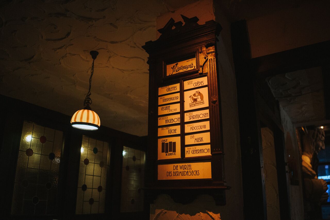The Mandragora was founded in 1977 as a restaurant, pub and creperie, being the first creperie in Germany at the time. Due to its long-standing tradition of over forty years, this place is the definitive root of the famous Bermuda3Eck.